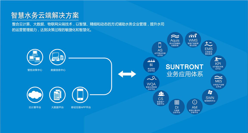 基于物聯(lián)網(wǎng)、云計(jì)算的管理平臺為各種水處理運(yùn)營的安全管理、生產(chǎn)運(yùn)行、水質(zhì)化驗(yàn)、設(shè)備管理、日常辦公等提供統(tǒng)一業(yè)務(wù)信息管理平臺,對企業(yè)實(shí)時(shí)生產(chǎn)數(shù)據(jù)、視頻監(jiān)控?cái)?shù)據(jù)、工藝設(shè)計(jì)、日常管理等相關(guān)數(shù)據(jù)進(jìn)行集中管理、統(tǒng)計(jì)分析、數(shù)據(jù)挖掘,為不同層面的生產(chǎn)運(yùn)行管理者提供即時(shí)、豐富的生產(chǎn)運(yùn)行信息,為輔助分析決策奠定良好的基礎(chǔ),為企業(yè)規(guī)范管理、節(jié)能降耗、減員增效和精細(xì)化管理提供強(qiáng)大的技術(shù)支持。